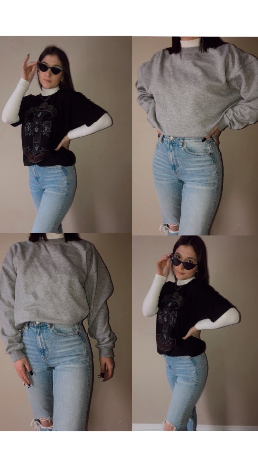 Outfit 2: Lightwash Mom Jeans, Long Sleeve White Turtleneck and Graphic Tee